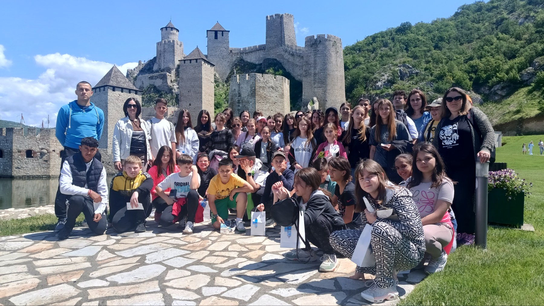 У суботу, 10. маја, реализована је једнодневна екскурзија ученика старијих разреда. Путни правац је био Голубац - Лепенски Вир. У добром расположењу, након тросатног путовања из Сакула и Баранде, уследио је обилазак Голубачке тврђаве, споменика културе од изузетног значаја, смештеног на десној обали Дунава и на самом улазу у Ђердапску клисуру. Кроз кратак филм и причу локалног водича ученици су се упознали са бурном историјом тврђаве, њених девет кула, биткама између Османског царства и краљевине Угарске, као и значајном 1868. годином када је тврђава коначно предата на управу српском кнезу Михаилу Обреновићу. У Палати Голубачке тврђаве постављена је изложба ратничке опреме и наоружања из средњег века. Могли су се видети оригинални предмети, бројни реквизити и модели, информативни панои и дигитални садржаји и научити понешто о вештини ратовања хладним и ватреним оружјем посаде тврђаве из тог доба. |