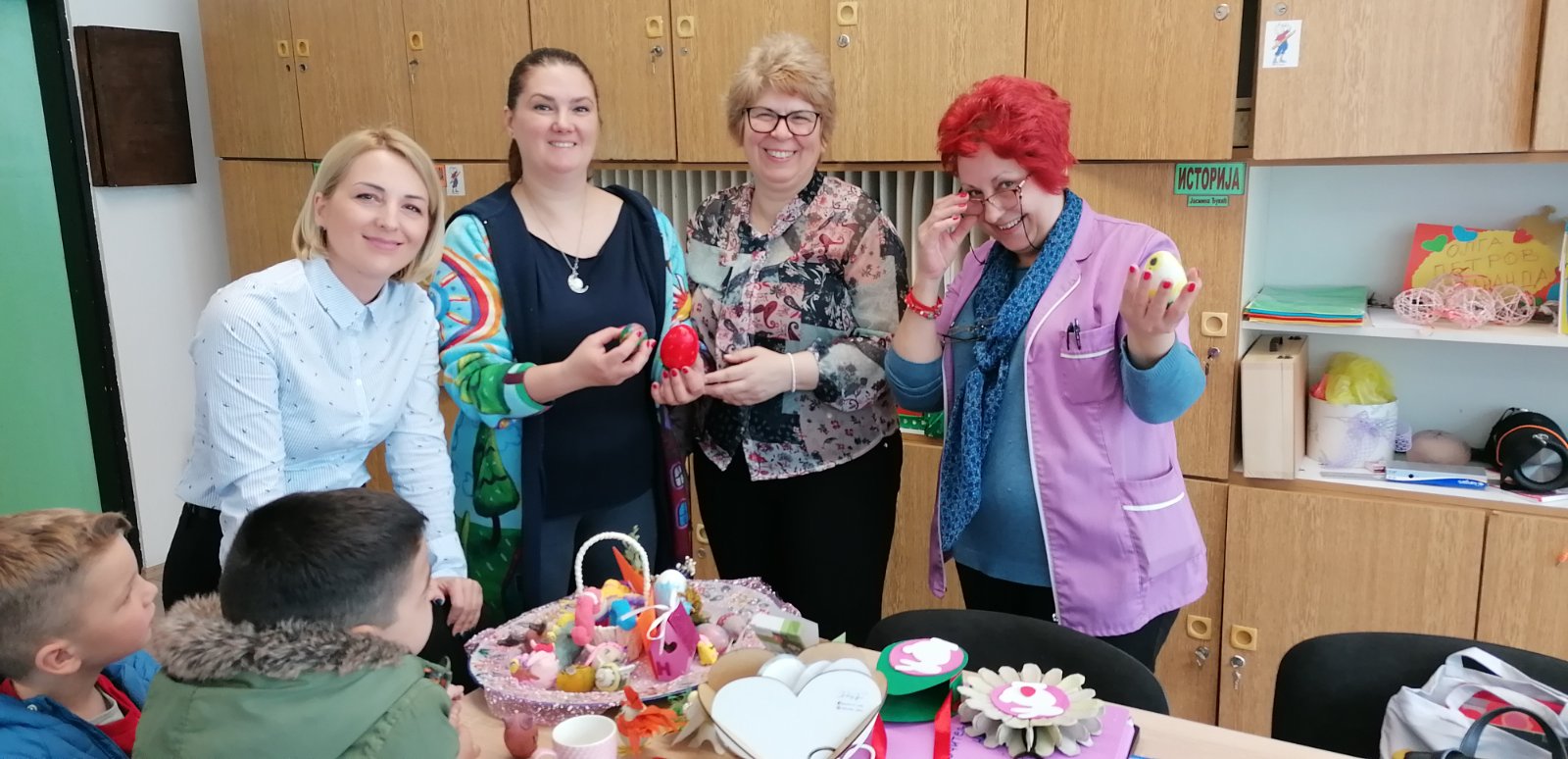 Ученици 4/2 Издвојеног одељења „Олга Петров“ у Баранди, у четвртак 24. априла, имали су прилику да угосте две баке. Повод је била наставна јединица из српског језика „Народни обичаји“. Баке су причале о обичајима који су присутни у нашем народу и који се кроз генерације преносе с колена на колено. Подсетили смо се обичаја везаних за рођендан, Ускрс, Божић, венчање, рођење детета... Једна бака нам је испричала о традиционалном узгоју пилића и том приликом донела домаће пиле и показала га ученицима. Друга бака је говорила о фарбању јаја луковином, њиховом скривању по дворишту и проналажењу као посебном дечјем доживљају. Причала је и о много већем поштовању одраслих када је она била дете него што је то данас. |