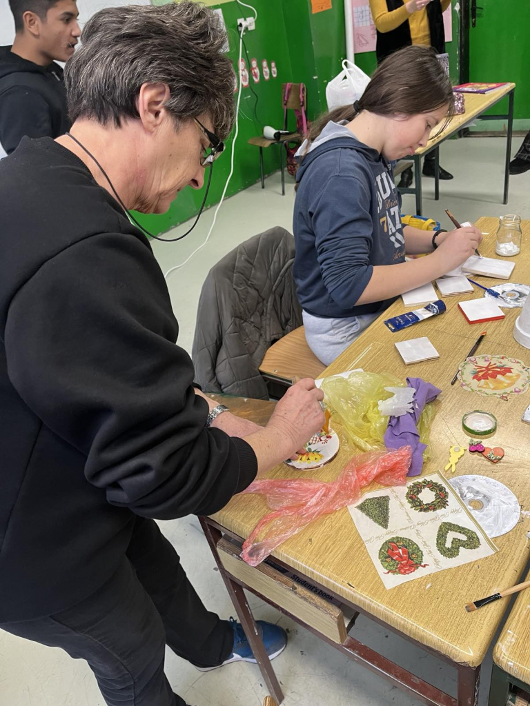 Ученици осмог разреда ИО ,,Олга Петров” Баранда се увелико припремају за предстојећи новогодишњи базар. На часовима домаћинства током децембра декупаж техником украшавају различите интересантне предмете за свој изложбени кутак. Посебну драж, како истиче наставница Маријана Легетић, чине већ коришћени предмети који након репарације добијају свој нови изглед. У уторак 3. децембра специјална гошћа је била Татјана Гроздановић, административни радник школе, која се и сама веома успешно бавила декупажем. Ученицима је с осетном топлином говорила о овој креативној техници из 12. века, наглашавајући три значајна корака: добру припрему подлоге, декорацију салветама које се исецају и заштиту лакирањем. Ђаци су могли да виде неколико Татјаниних радова и добију корисне савете у разговору с њом. Две ученице су припремиле и ппт презентацију, а један ученик је излагао о историји декупажа. Током часа су се сви одлично забављали. На крају је уследило слатко послужење у виду крофница преливених чоколадом.